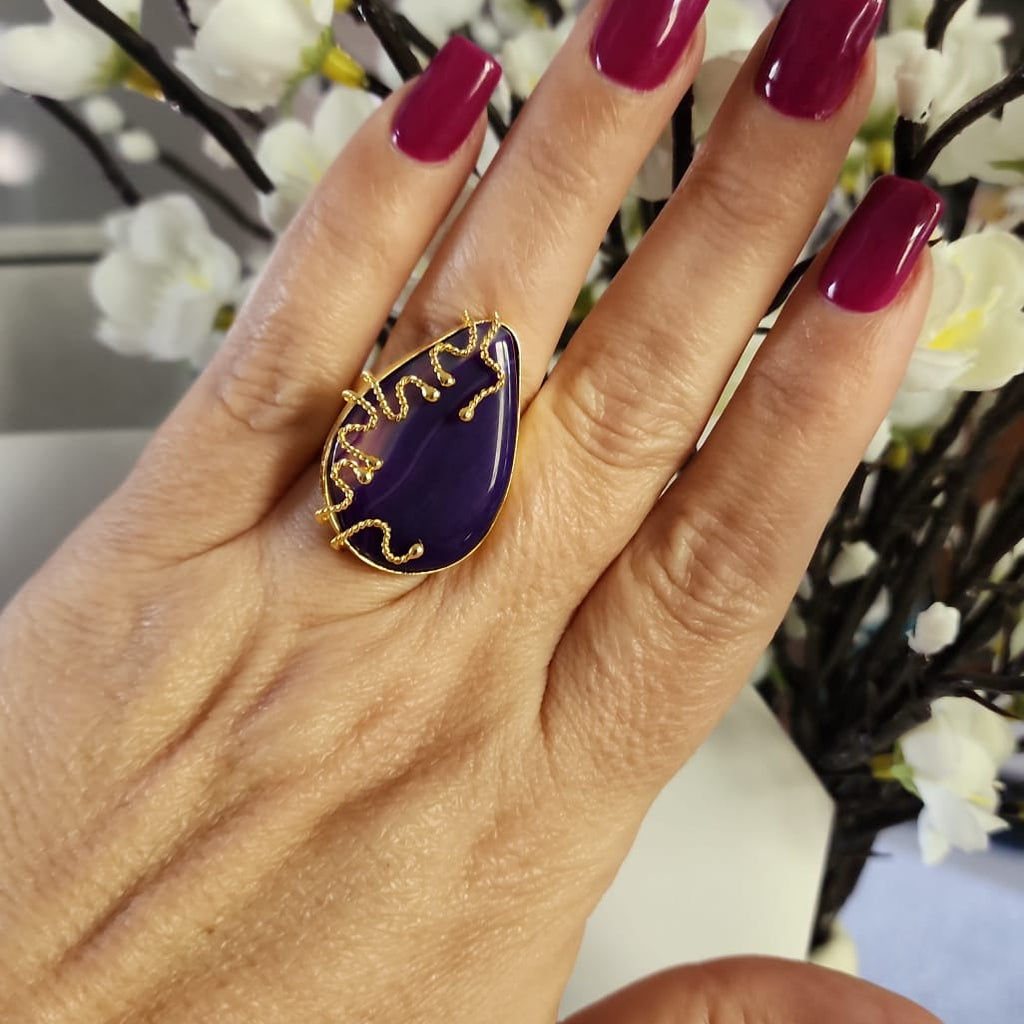 Anillo Baño de Oro Piedras Preciosas Color Azul