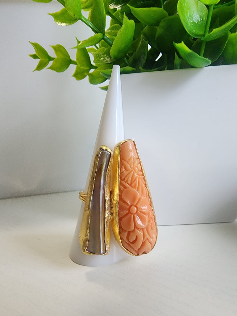 Anillo Cristal Azul Cuarzo Coral
