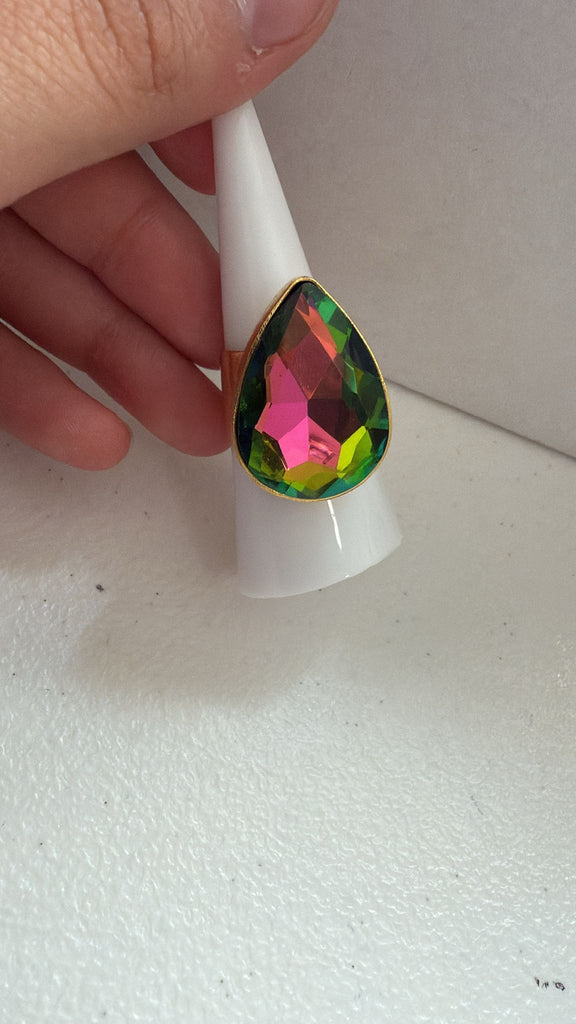 Anillo Cristal Gota Tornasol