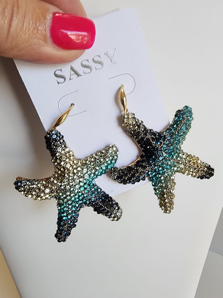 Aretes Diamantados de Estrella Tonalidades de Azul