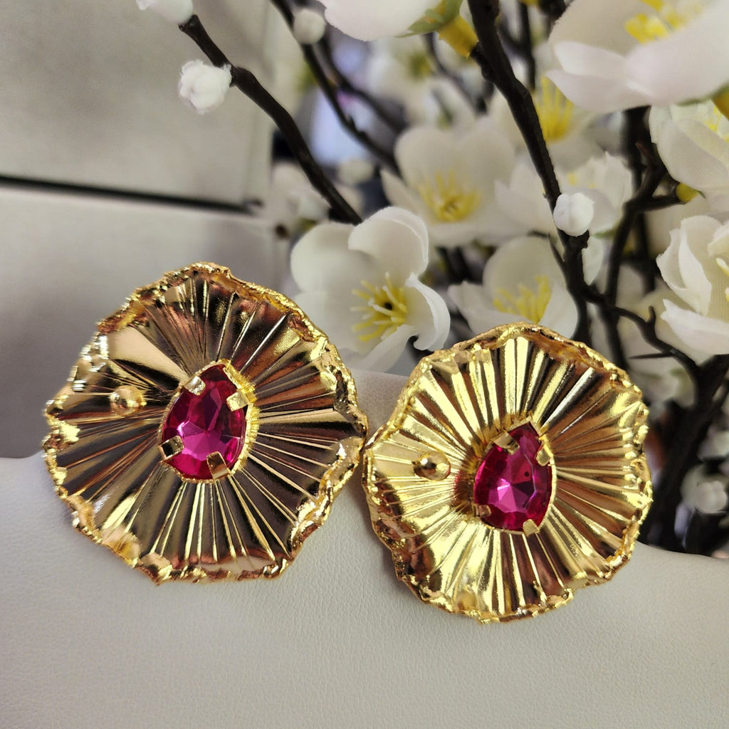 Aretes Flor Gloria Base dorada Con la Piedra Ruby