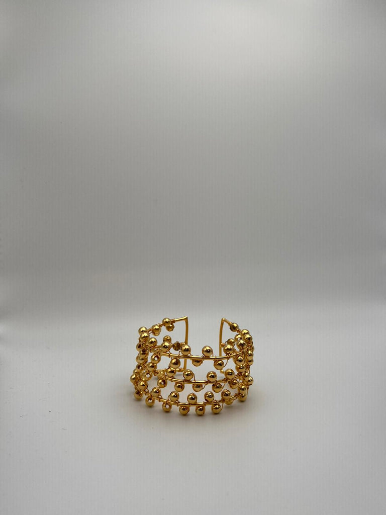 Es una pieza elaborada 100% a mano con un baño de 24k. Con 3 líneas de balines elambrado