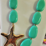 Collar de Estrella Dorada Con Piedras Turquesa Aretes
