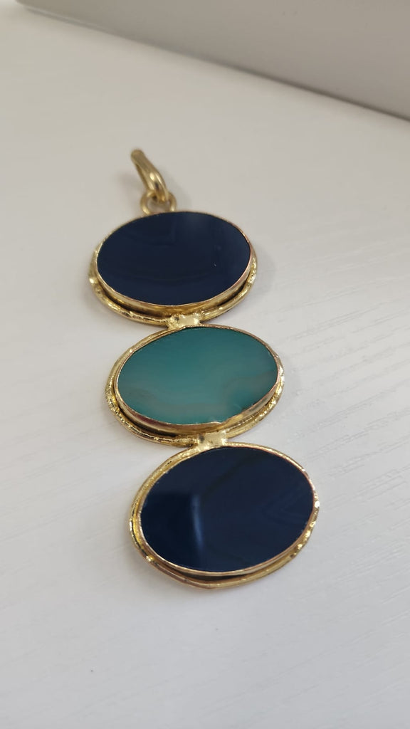 Gema 3 Piedras Ovalada en base dorada Tonos azules