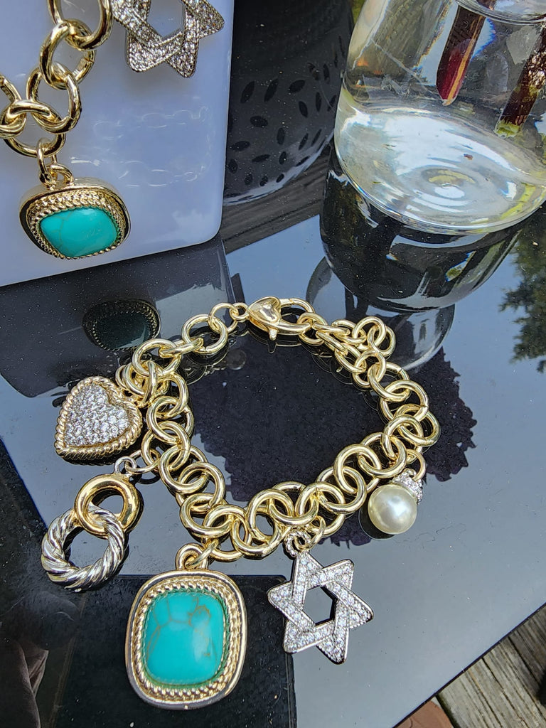 P-962-Pulsera Rodio de Charms Piedra Turquesa