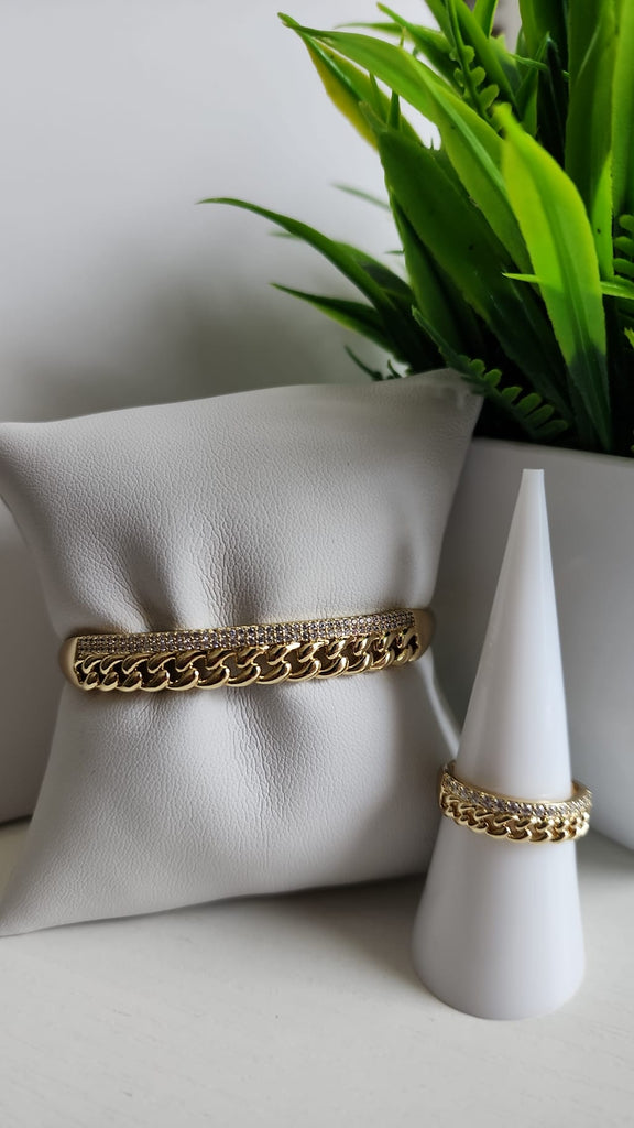 Set Bangel y Anillo Diamantado y Cadena Cubana